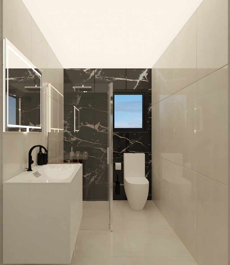 This third-floor apartment boasts a contemporary design with high-end finishes throughout, including premium sanitary installations. Both the spacious bedrooms and the kitchen are thoughtfully designed with built-in furniture, ensuring a cohesive and stylish living space.