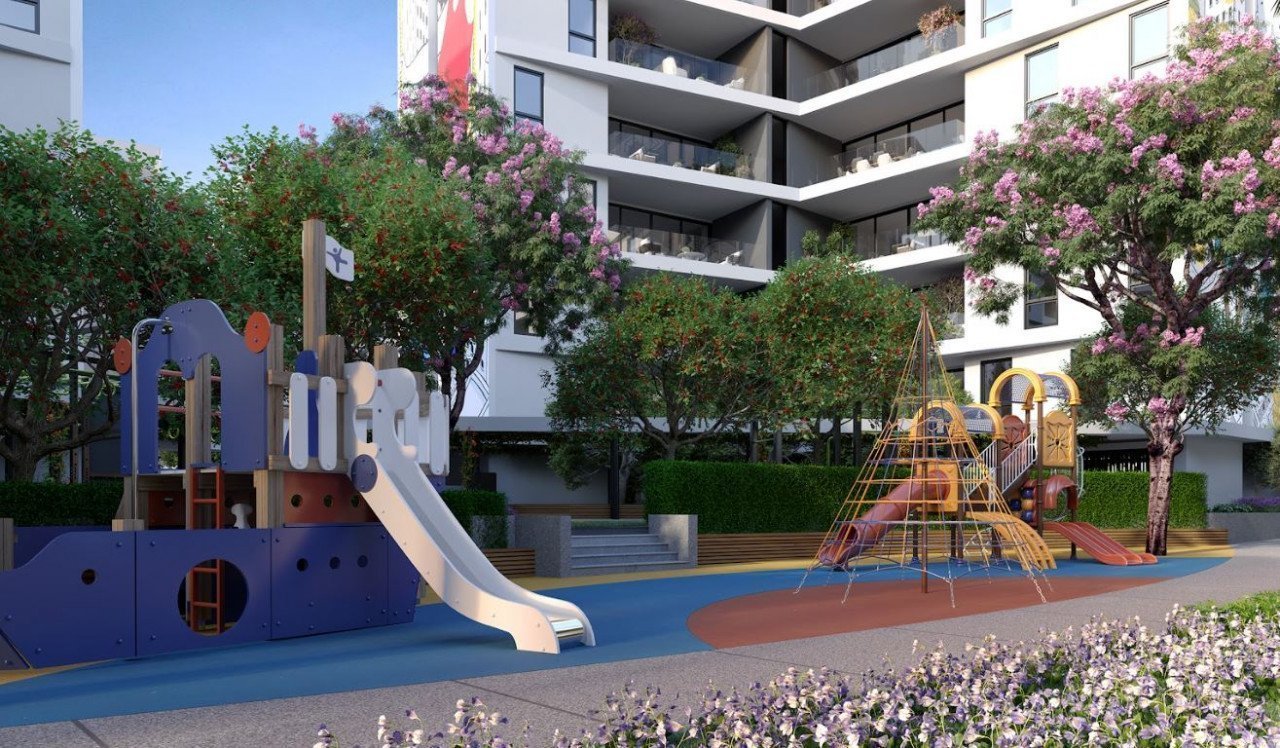 It is a 6-floors gate-closed club complex of 70 apartments with a family concept. A large children's and adult sports ground inside the complex. Landscaped garden with a stream. Sea view from the 3rd floor. Swimming pool, underground and covered parking.
