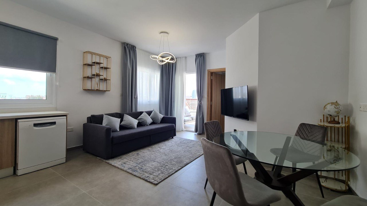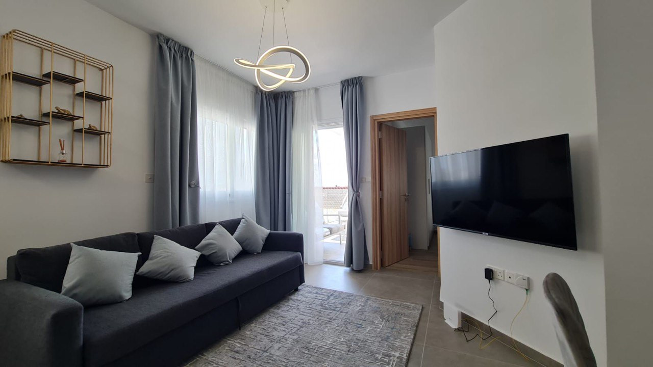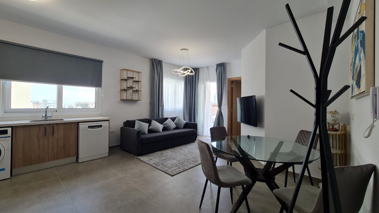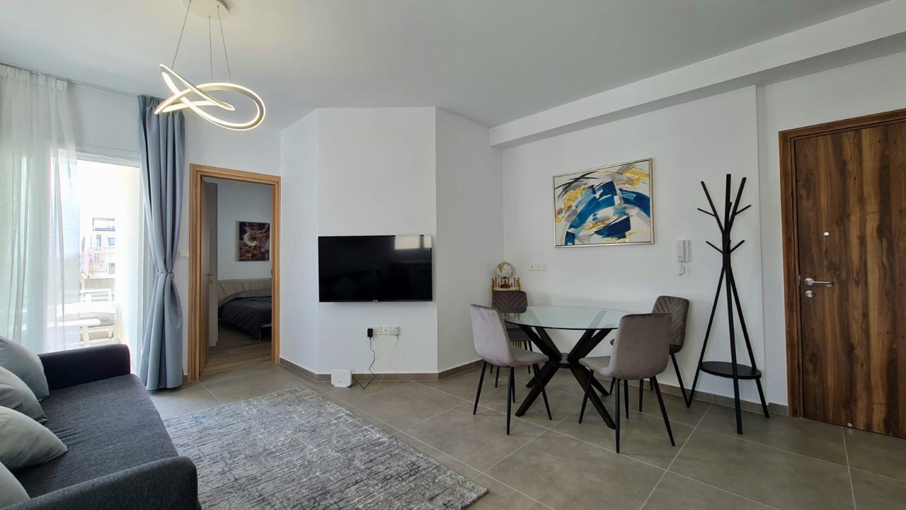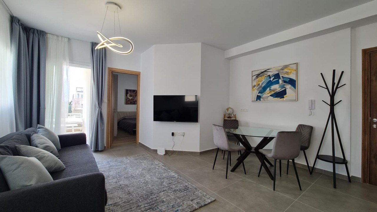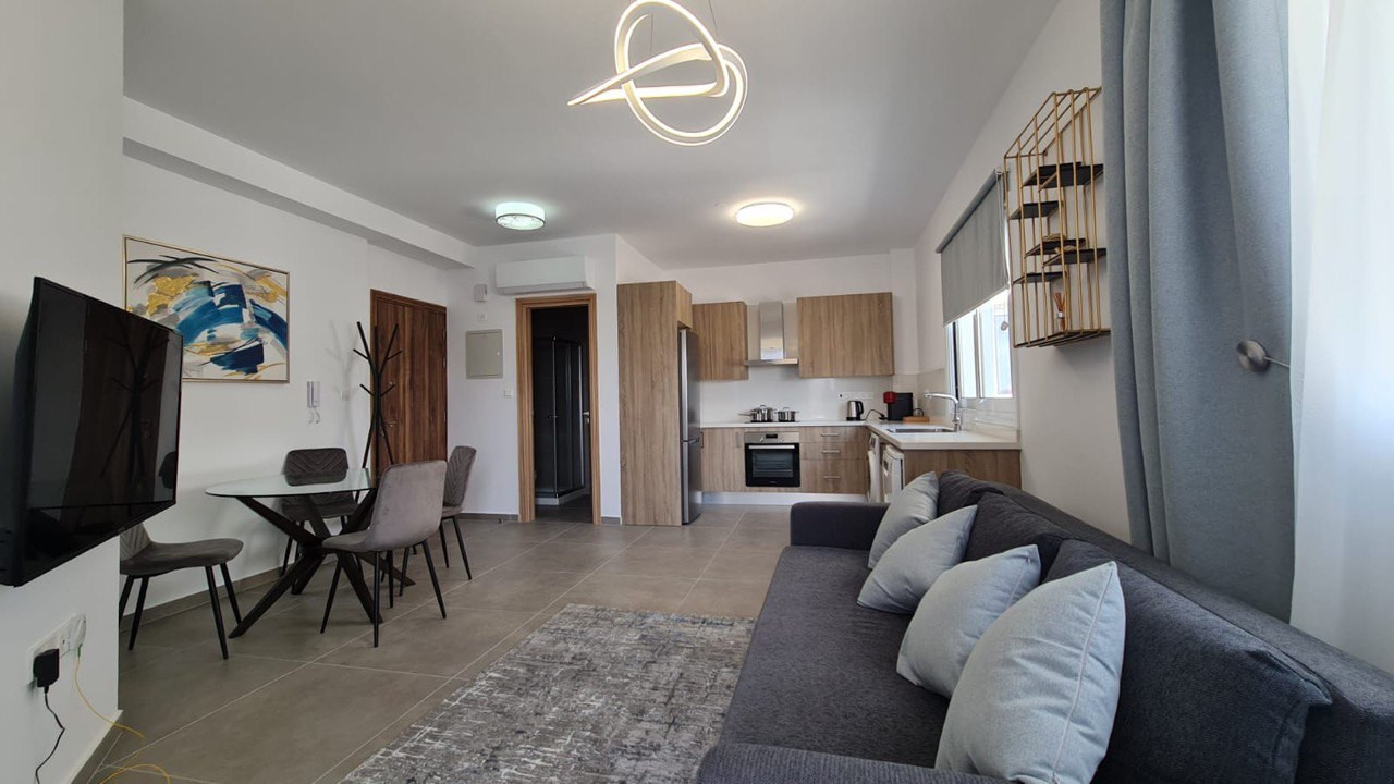 Stylish and fully furnished 1-bedroom, 2-bathroom apartment in Papas area of Limassol.