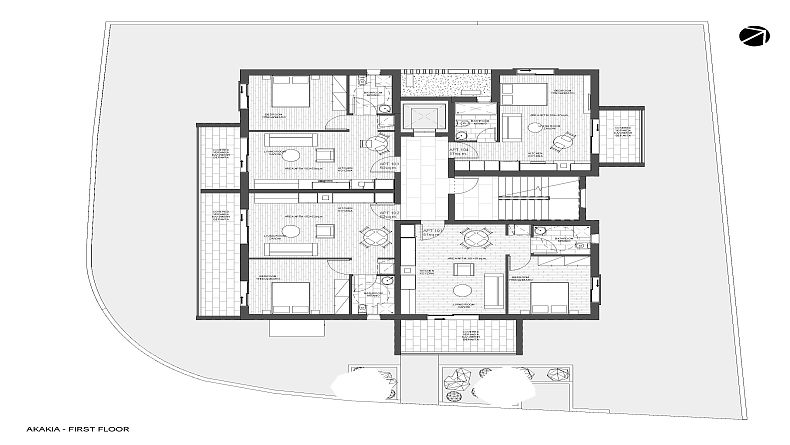 The apartment complex consists of five modern apartments, two studios and one penthouse on the top floor. All units have verandas, and the penthouse has a roof garden with an outdoor BBQ space