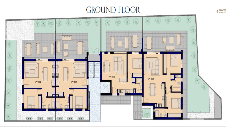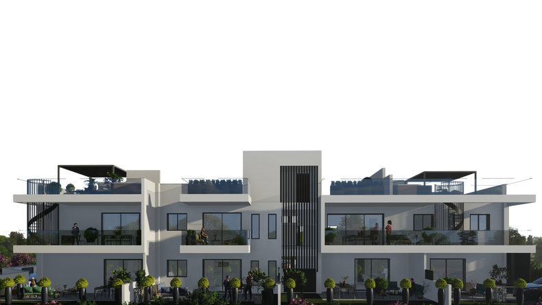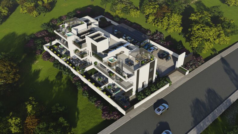 The building has 7 luxury apartments on 2 floors. This delicate, modern and innovative development is built based on a Zero Energy Building (ZEB) due to photovoltaic solar panels for every apartment and Sustainability principles. With a range of one 3-bedroom,two 2-bedroom and four 1-bedroom apartments, designed to minimize energy costs as well as maximize comfort and wellbeing
