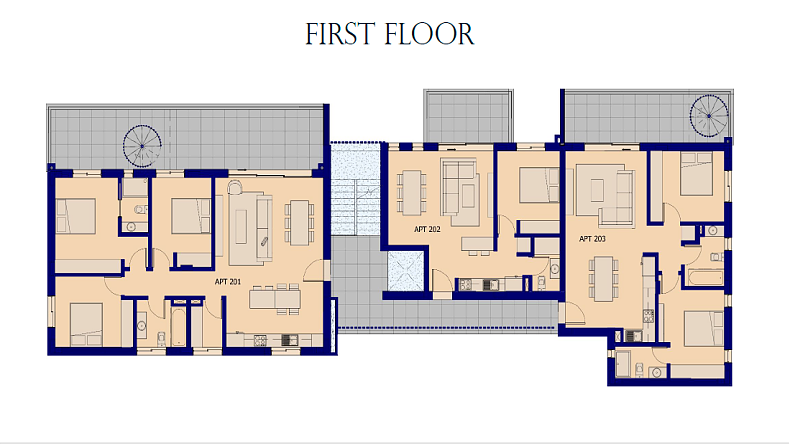 The building has 7 luxury apartments on 2 floors. This delicate, modern and innovative development is built based on a Zero Energy Building (ZEB) due to photovoltaic solar panels for every apartment and Sustainability principles. With a range of one 3-bedroom,two 2-bedroom and four 1-bedroom apartments, designed to minimize energy costs as well as maximize comfort and wellbeing