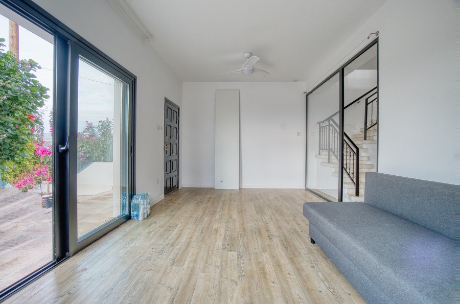 This charming semi-detached 1-bedroom house is located in the desirable area of Chloraka. The property features a generous private garden, ideal for outdoor living, entertaining, or creating a serene personal space. Inside, the home offers a separate kitchen and a comfortable layout. From the upper floor, you can enjoy stunning panoramic views of both the sea and the surrounding mountains, providing a peaceful and scenic atmosphere throughout the living spaces. The property also benefits from a private garage, already equipped with provisions to be converted into a self-contained studio if desired, offering a fantastic opportunity for additional living space or rental income.