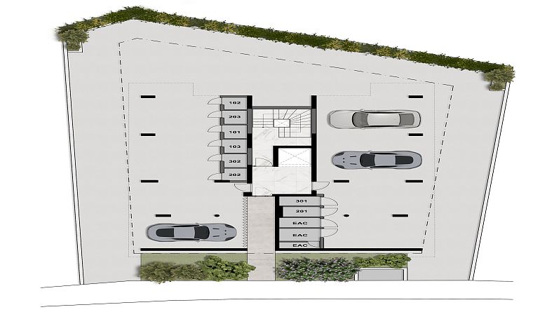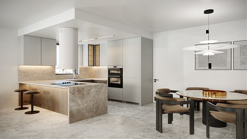 Each apartment is meticulously designed with open spaces and large verandas. From the 2nd floor there is a sea view.