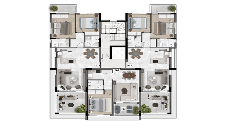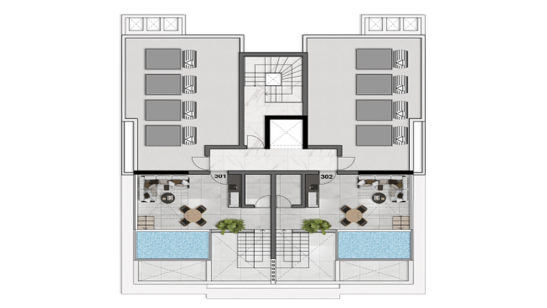 • 2 bed, 2 bath, 79.3m2 covered, 21.2m2 covered veranda, roof garden 64.2 total m2 178.2