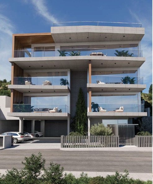 The building consists of four spacious 2-bedroom apartments and one grandiose 3-bedroom penthouse with its own roof garden, offering panoramic views of Limassol and the sea.