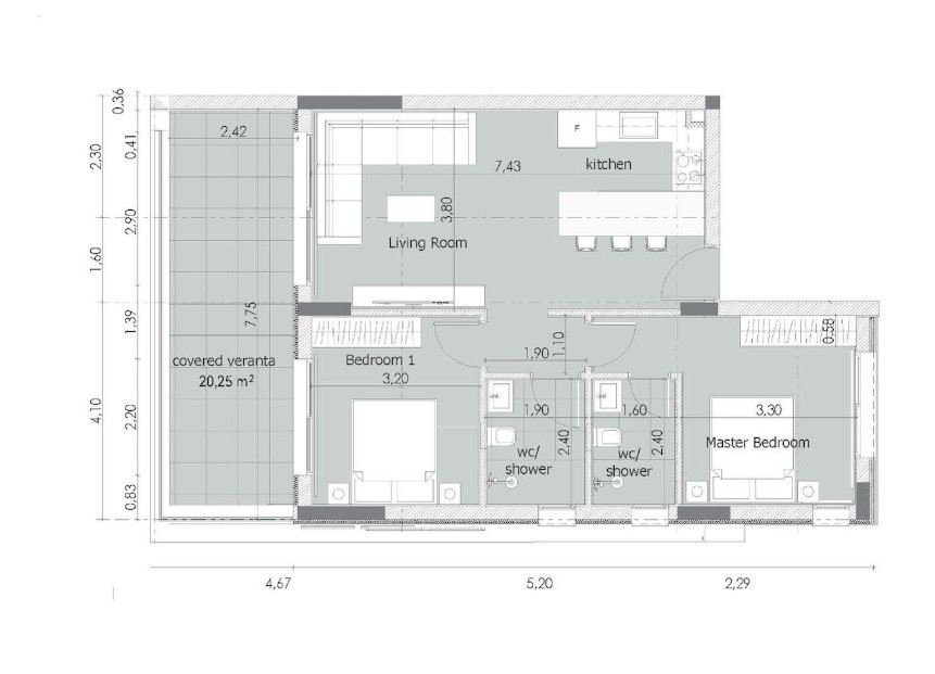 Covered veranda 20,25 sq.m.