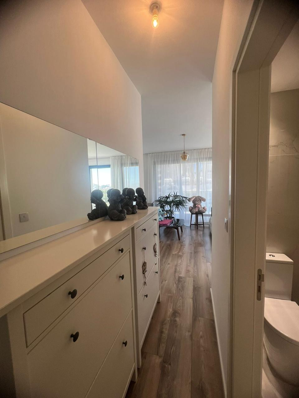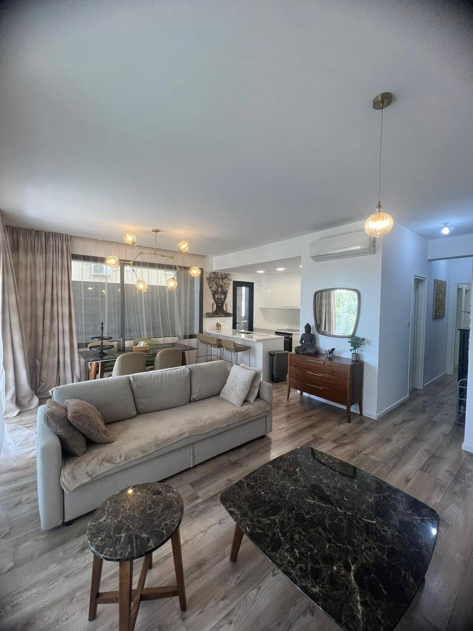 This 2-bedroom apartment boasts a sleek, contemporary layout with an open-plan living area, high-end kitchen finishes, and large windows for natural light.