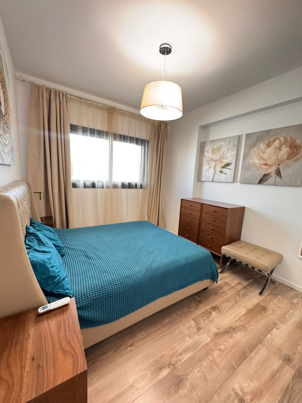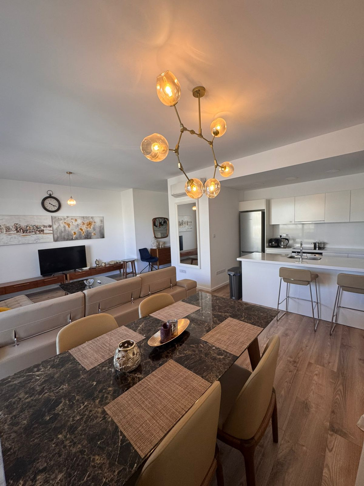 This 2-bedroom apartment boasts a sleek, contemporary layout with an open-plan living area, high-end kitchen finishes, and large windows for natural light.