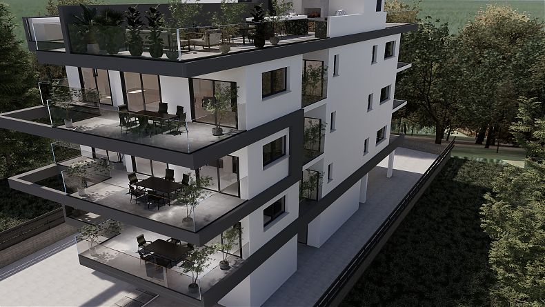 Luxury apartments in the prestigious area of Agios Athanasios, the building is surrounded by greenery and opposite a green area.