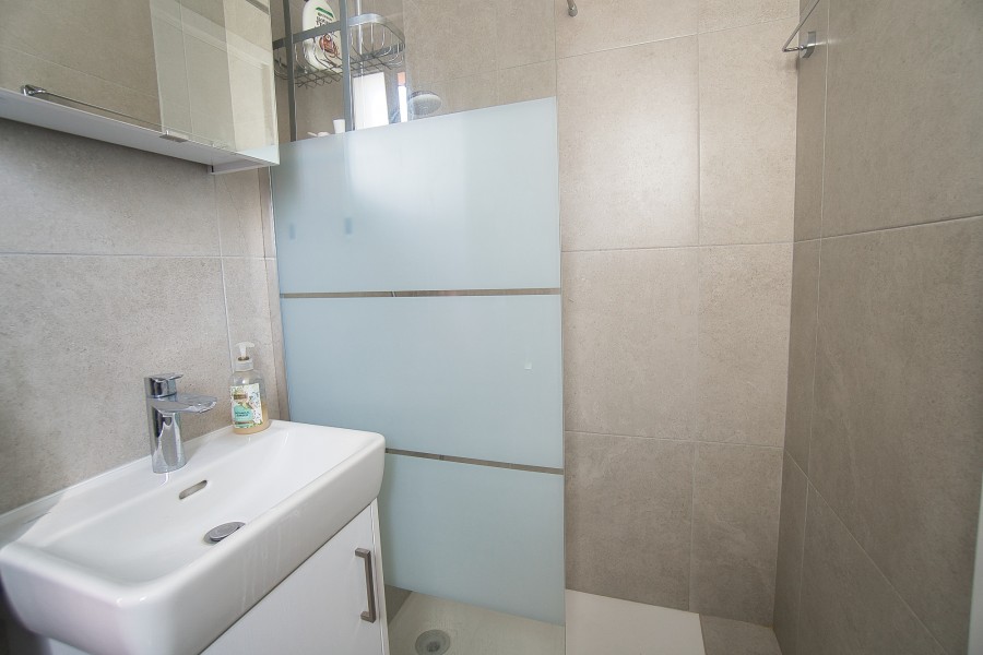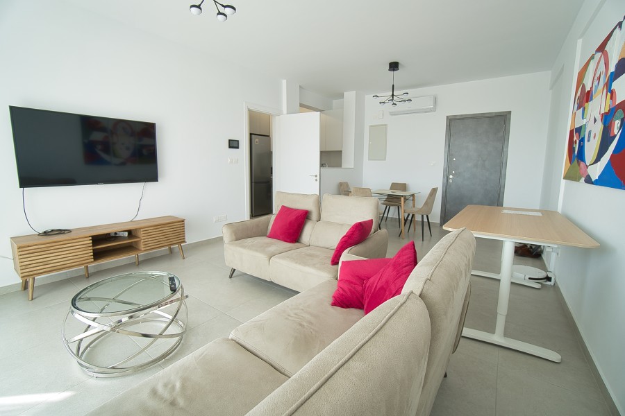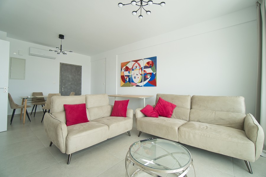 Introducing a brand-new, two-bedroom, two-bathroom apartment offering breathtaking panoramic sea views from every room. The master bedroom boasts an en-suite bathroom and a spacious walk-in wardrobe. Enjoy abundant natural sunlight in this tranquil location, conveniently close to all amenities with easy access to town and the highway. Included are private parking and a storeroom for your convenience.