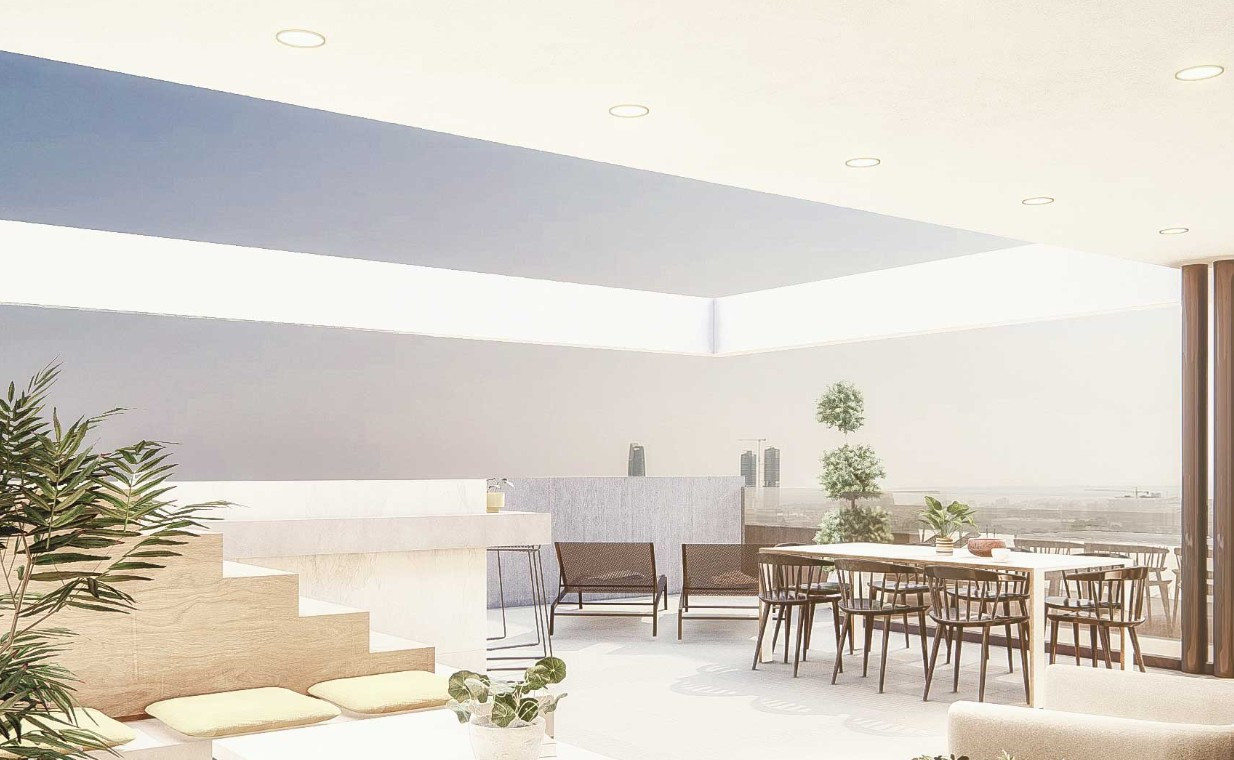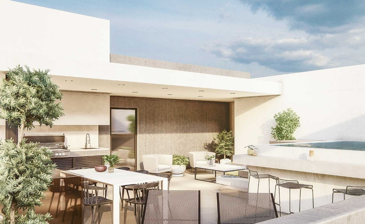 Private roof garden 87 sq.m. with provisions for a pool, outdoor sitting area, and barbecue zone