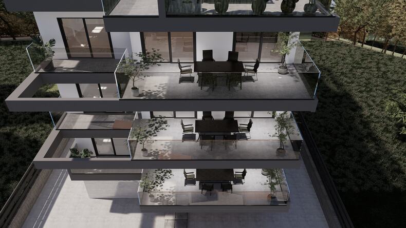 Luxury apartments in the prestigious area of Agios Athanasios, the building is surrounded by greenery and opposite a green area.