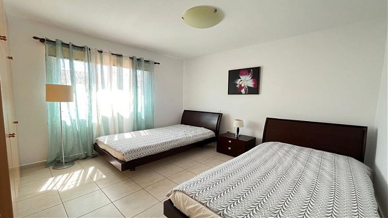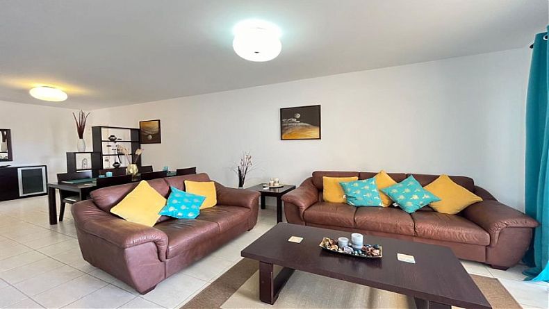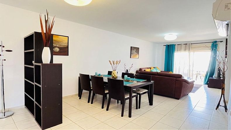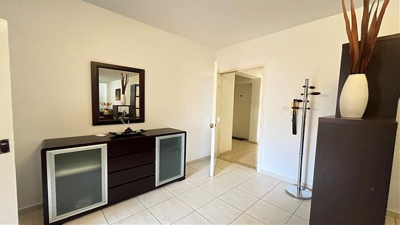 This spacious apartment is located on the second floor and has an open plan large living/dining areas and a kitchen with access to the veranda. Patio doors from the living area lead out to a good sized covered veranda offering views to the swimming pool of the project.