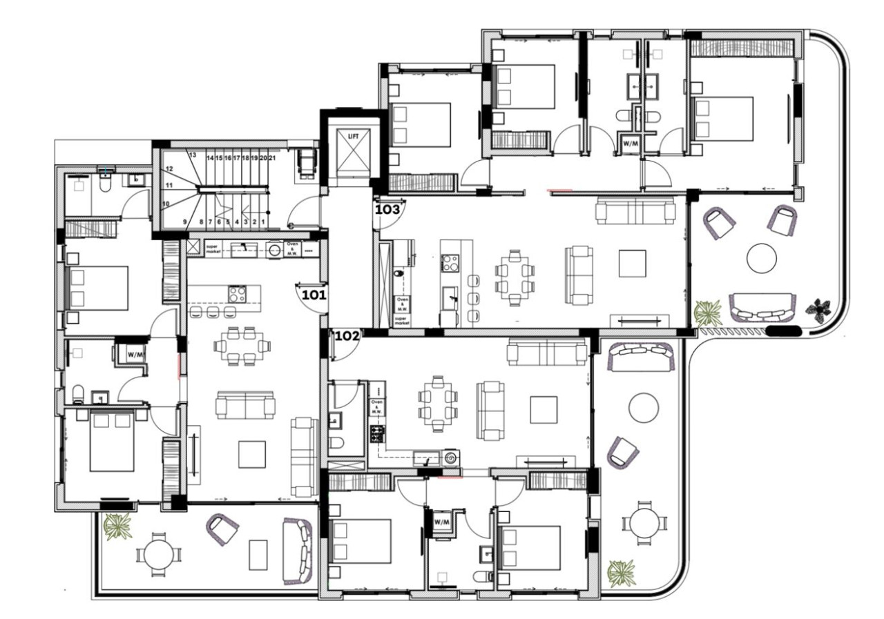 The project consists of 6 elegant apartments with expansive verandas and roof-garden for the apartments of the second floor.