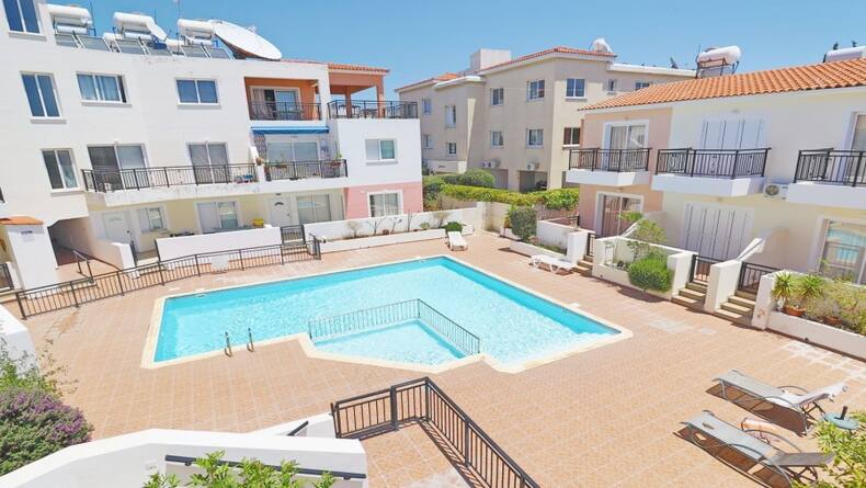 This recently renovated ground floor ,key ready, 2 bedroom, corner unit apartment, with its own spacious private garden is in the Universal area of Kato Paphos. This development offers a large communal pool and gated communal parking area. It is only minutes’ walk to all amenities including bus stop, bars, shops, and supermarkets. Entering the property from its own private entrance, and wrap around exterior, there is a spacious open plan dining, lounge, and kitchen area. The lounge area has double glazed sliding patio doors which lead to a spacious terrace and private garden area which is ideal for entertaining or relaxing. Both spacious double bedrooms share a full family shower room. Being near all amenities, this is an ideal investment opportunity or perfect for a holiday home.