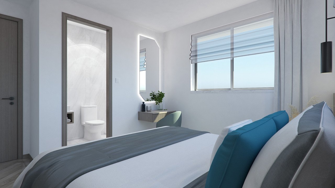 The fifth floor of the project are apartments with two bedrooms and three bathrooms each with spacious covered and uncovered balconies which sole purpose is to secure and maximise the comfortable and private quality of life of its apartment owners.