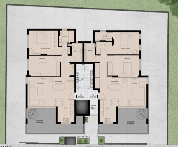 Each apartment includes 2 bedrooms of which the main bedroom has en-suite shower.