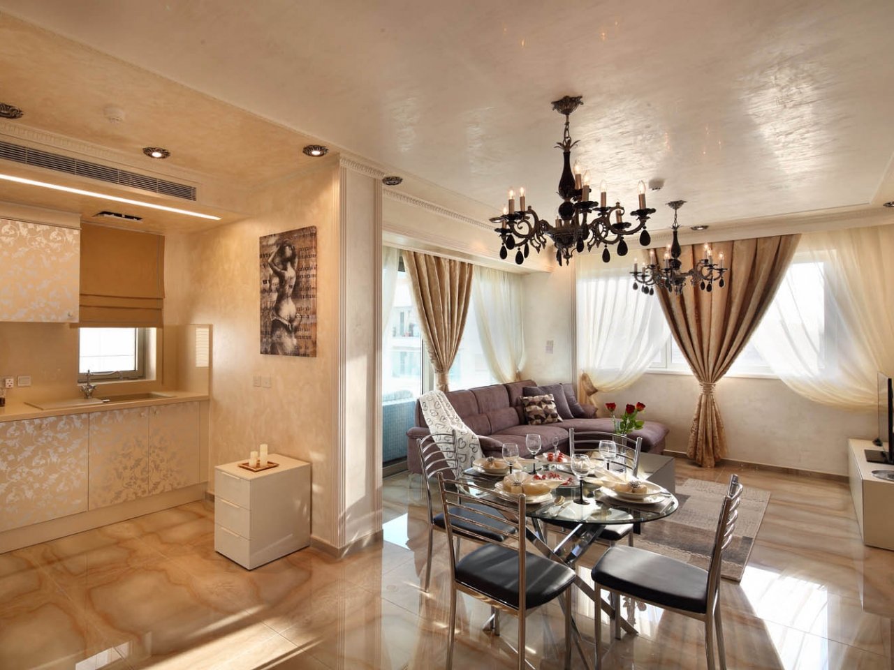 Lighting: Italian chandeliers.
