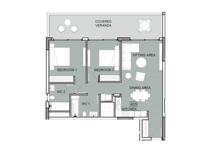 Penthouses enjoy private roof terraces with pools