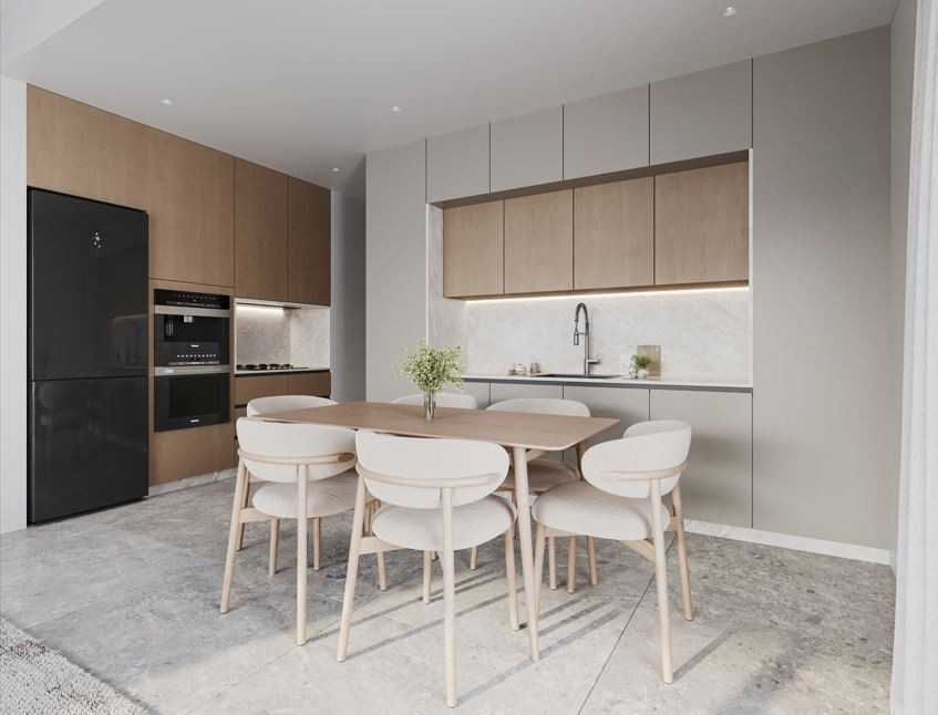 New project is located in the heart of the city center modern apartment building of eight apartments, two to each floor.