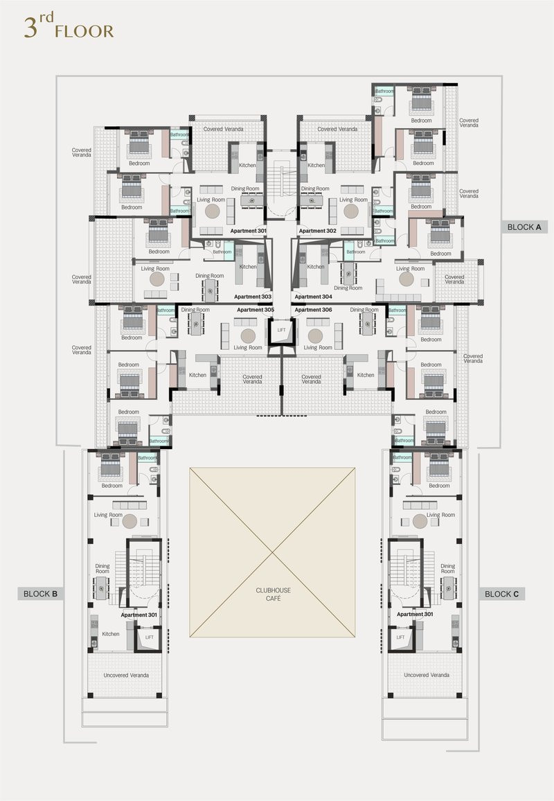 The development also features a private pool, gym, sauna and massage rooms, and a welcoming cafe.