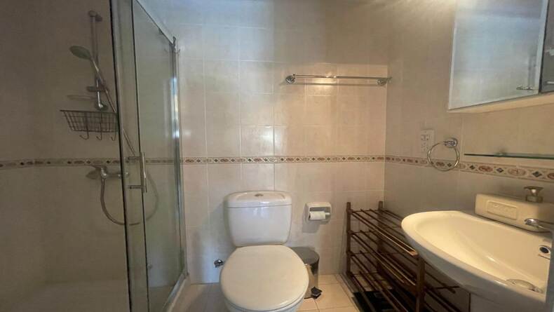There are 2 bedrooms and 2 bathrooms. The master bedroom has an en-suite shower (with washing machine).