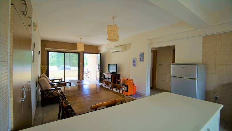 A 2 bedroom ground floor apartment in Pissouri just out of the main village roads and 3 minutes of drive to Pissouri beach offers a quiet and small community in the gated complex. A ground floor apartment has a front side and back side private area to make a beauiful gather space or a small yard. Inner area of property 80 sqm and 35 sqm total uncovered verandas. Apartment benefits of its close proximity to the village center and restaurants and local bars as well as great positioned complex avoiding a noise from a main roads.