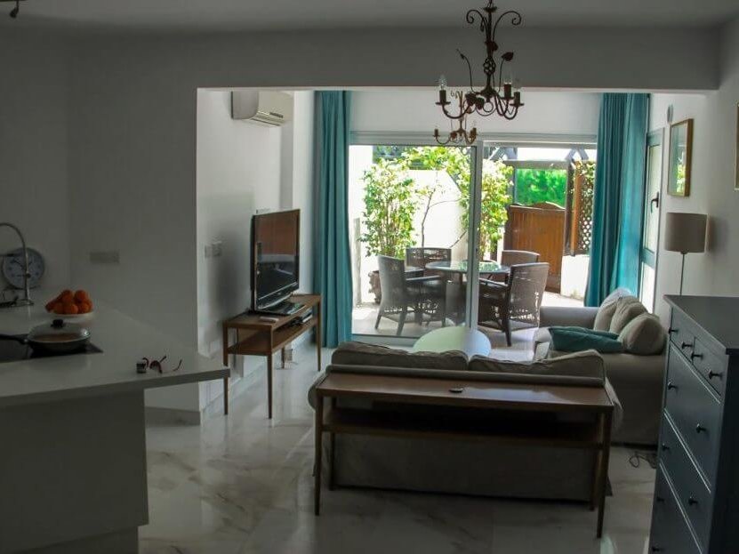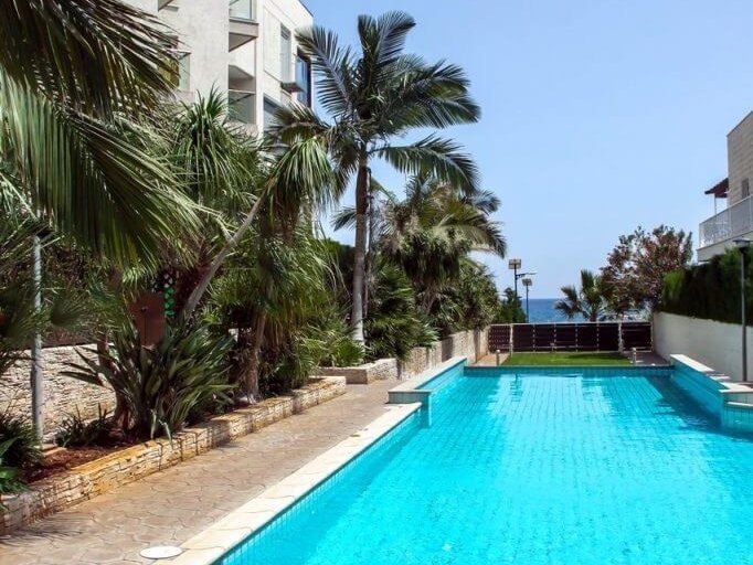 2-bedroom apartment in a complex on the first line near a sandy beach. The residents have access to a communal swimming pool, a green area, a children’s playground. The apartment has one master bedroom with its own bathroom and shower, a second bedroom with 2 single beds, a cozy lounge, a furnished veranda amidst blossoming gardens with a seating area and outdoor furniture. Within walking distance from the apartments there are restaurants, bars and shops.