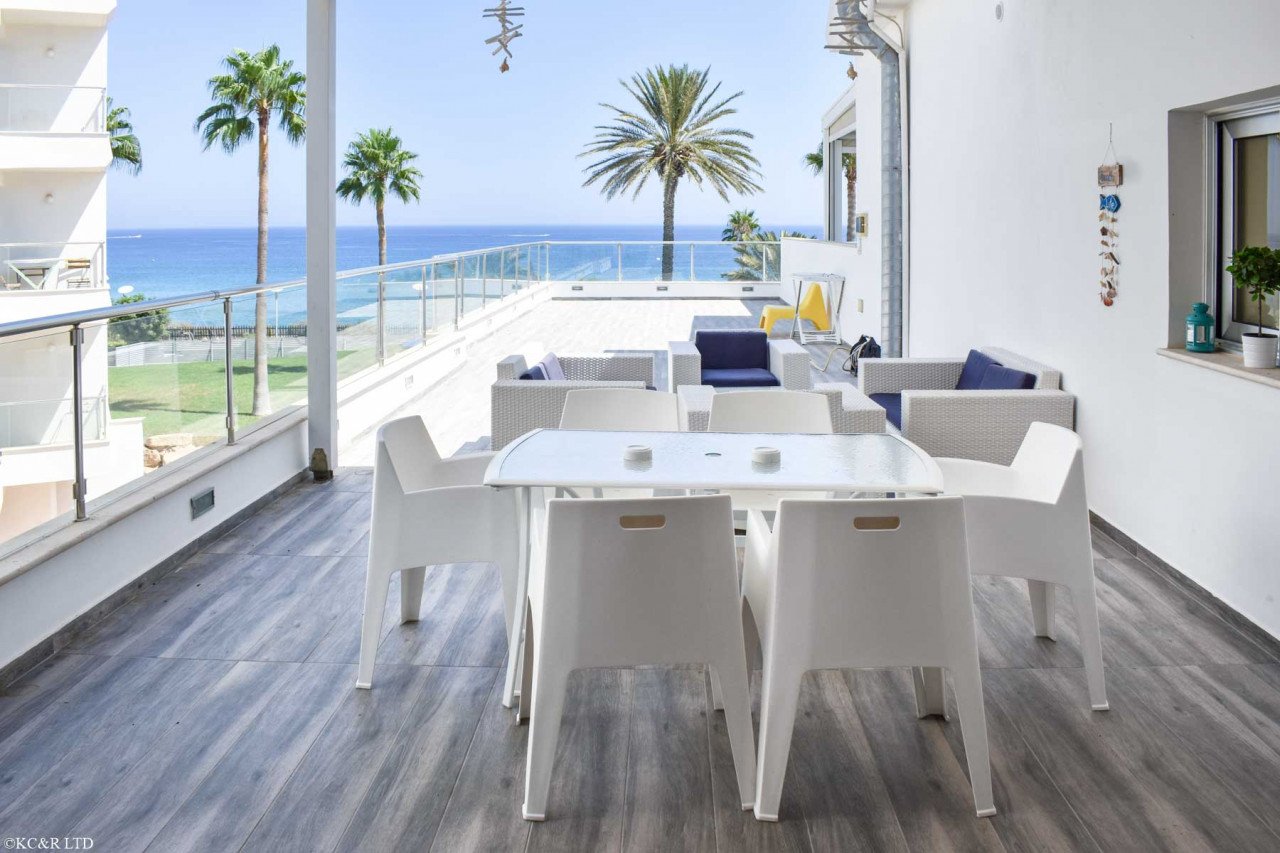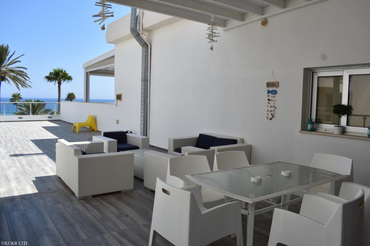 With an expansive 100 m2 covered area and a huge 100 m2 veranda this beautiful apartment is the perfect seafront retreat. The complex has a large communal pool at the edge of the sea and is only a 3 minute walk from Fig Tree Bay to the south or Protaras beach to the north.