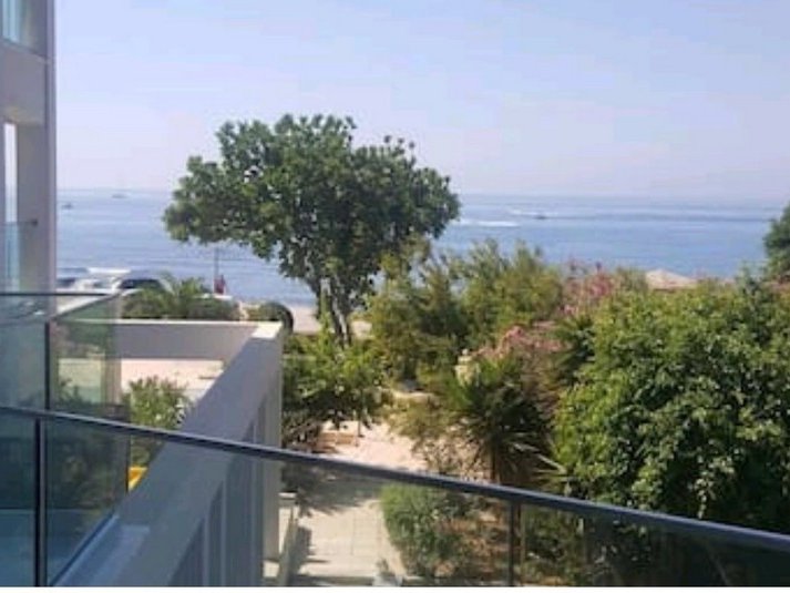 Two bedroom beach front apartment in a gated complex, located in tourist area. Covered area 80m2, fully furnished, two balconies. Apartment has full sea view. Building and apartment was fully renovated in 2017.