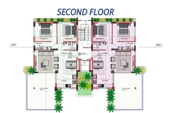 Consist of open plan living / dining / kitchen area, 2 bedrooms and 2 bathrooms with the showers.
