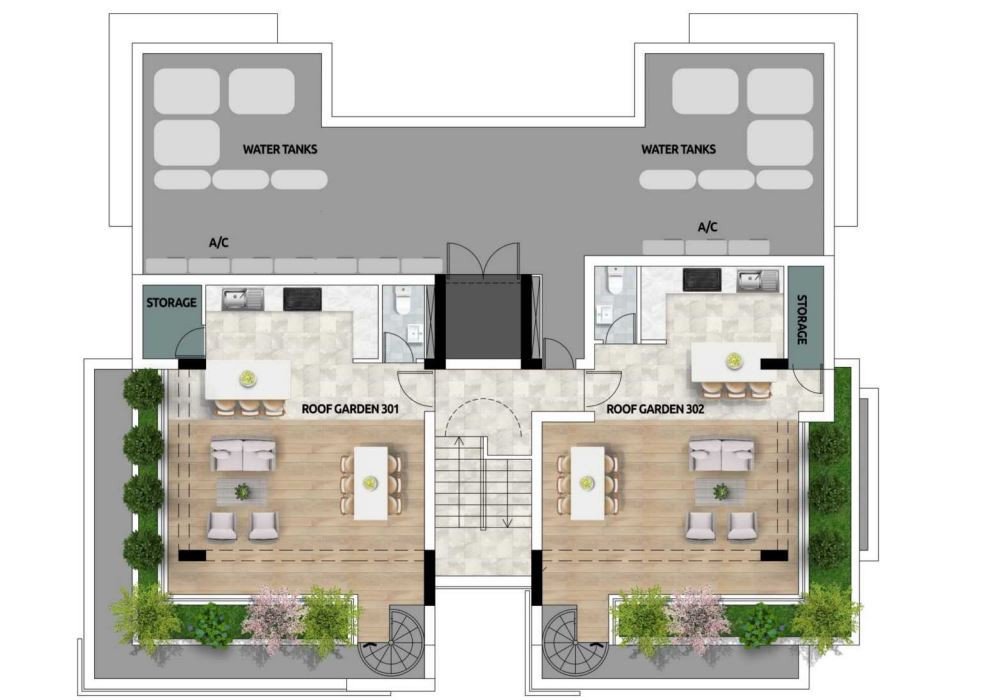 Roof terrace for top floor apartments