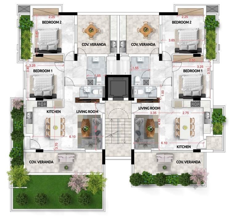 The project consists of 6 two-bedroom apartments all with wonderful views of the sea. The apartments are spacious, with open plan kitchen, including 1 guest toilet, 1 bathroom, covered verandas, storage and 1 covered parking. The breathtaking view of the sea, the well designed spaces and it’s convenient location are ideal.