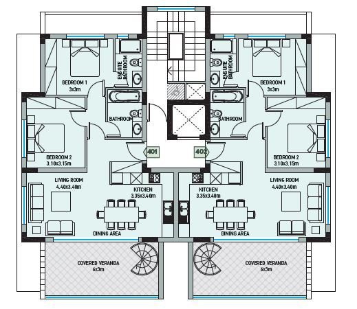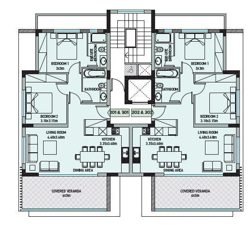 The building comprises different types of apartments with a living area ranging from 63m2 to 81 m2, plus large covered verandas with beautiful views across the sea and the inland green areas.