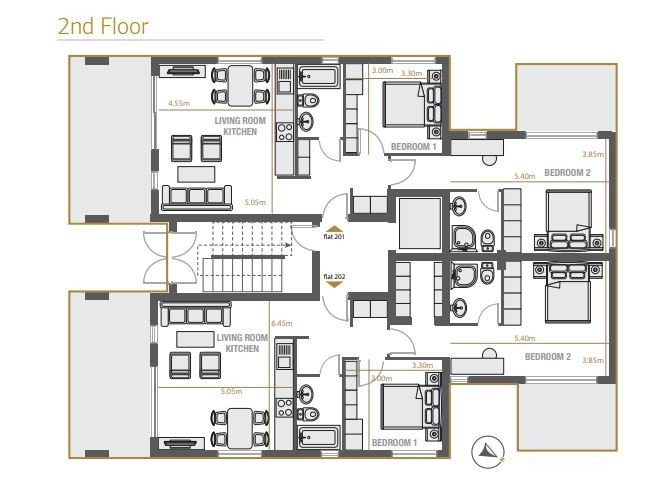 The project consists of of 2-bedroom and 1-bedroom apartments.