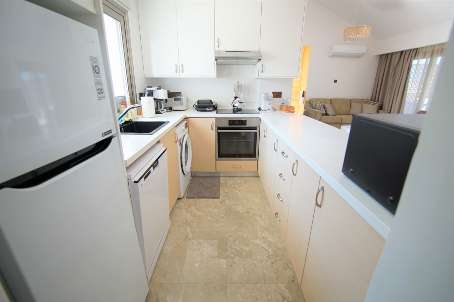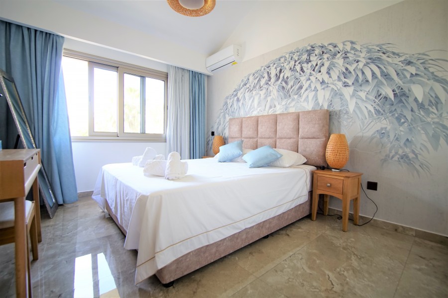 This lovely and modern two-bedroom bungalow is located in the Chloraka area and is a front-line beach property with an unobstructed view. It is situated approximately 5 min away from schools, supermarket, and Kings Avenue Mall and a 10 min drive to splendid Coral Bay. This property is an excellent choice for a family who seeks a permanent residence or a holiday home.