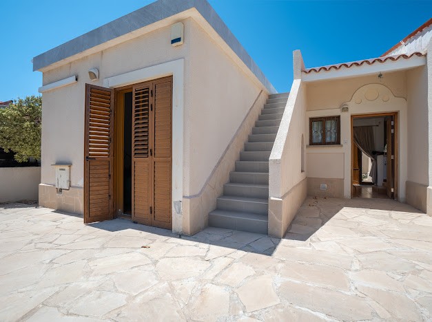This lovely two bedroom bungalow is located in Chloraka area and is a front line beach property with unobstructed view. It is situated approximately 5 min away from schools, supermarket and Kings Avenue Mall and a 10 min drive to splendid Coral Bay. This property is an excellent choice for a family who seeks for a permanent residence or a holiday home. The main entrance of the bungalow leads to an open plan living / dining area with fitted kitchen and then onwards to two good size bedrooms with fitted wardrobes and a family bathroom. The property is fully furnished with air conditioning, washing machine and all white goods are included as well. Easy access through the patio doors leads to a backyard with view to the Mediterranean Sea. In addition, it has access to a communal swimming pool, a delightful garden and one covered parking.