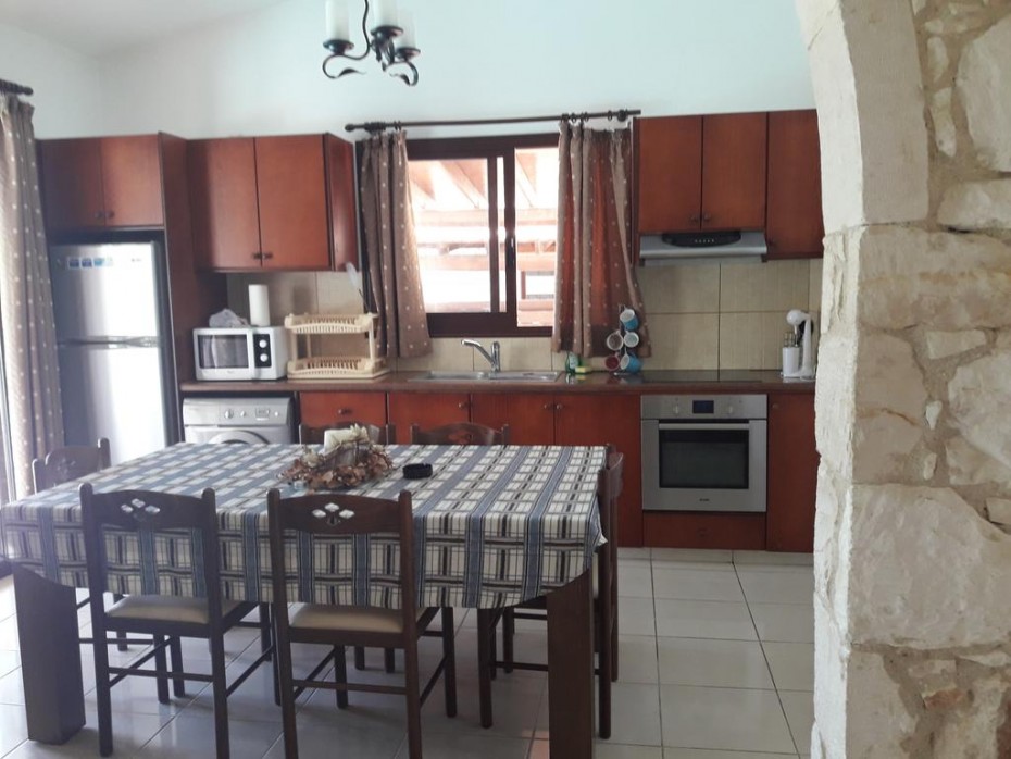 Beautiful stone house available for sale in Stroumbi village. A feature fireplace provides a focal point and makes the room look and feel really cozy. Another feature is the impressive archway through to the large kitchen. In this area also is the formal dining-area / table. The whole property is traditional in appearance and yet modern in furnishing and design. One of the bedrooms has a bunk bed and a double bed and there is also a jacuzzi in the bathroom.