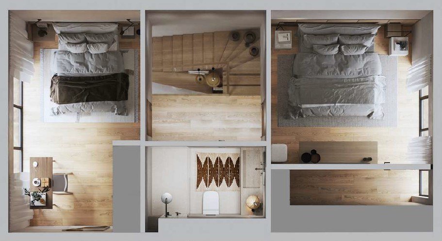 2 additional bedroom: 1 spacious, smartly organized kids/guest room with work/study space and ample wardrobe storage