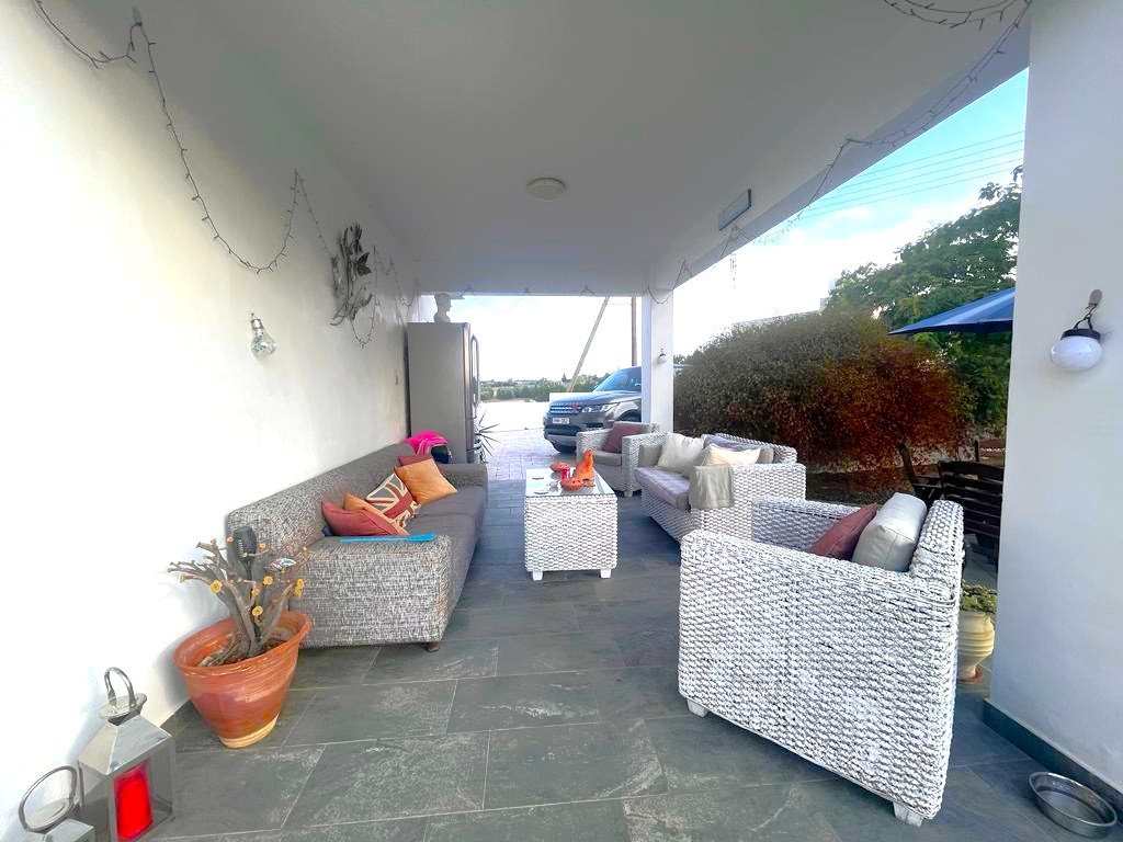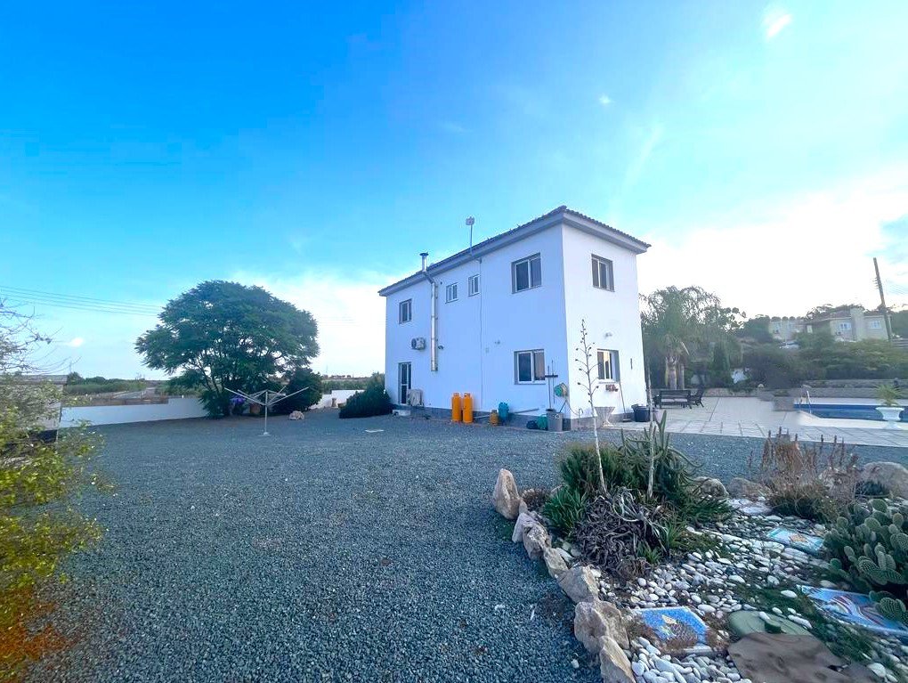 Nestled within the serene expanse of a 1521 sq.m. plot, this two-bedroom villa offers an enchanting retreat between the charming villages of Frenaros and Vrysoulles.