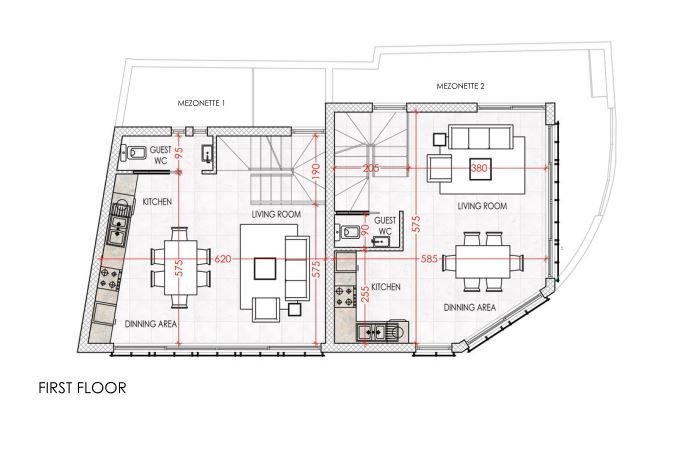 The project consists of two semi-detached townhouses situated just 50 meters away from Finikoudes beach.