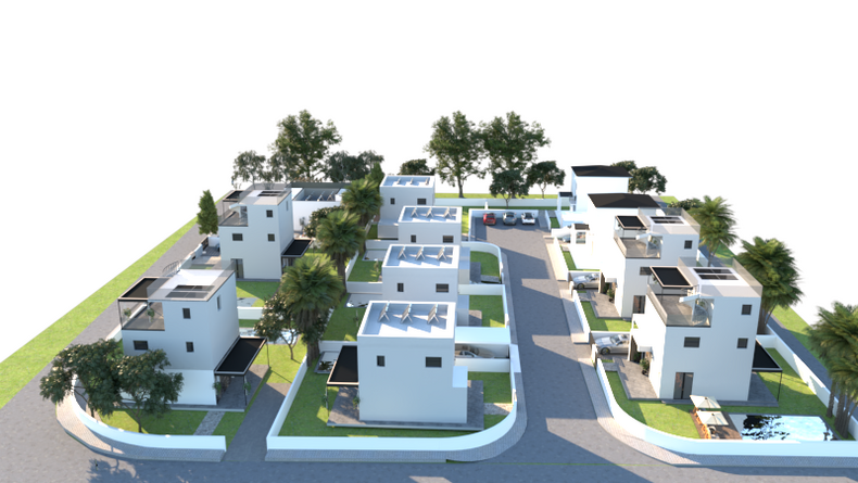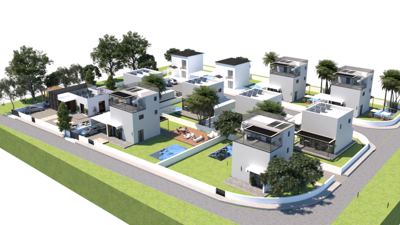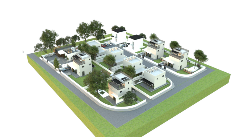 The Complex comprises of 11 detached Villas characterized by a minimal design and stands out due to its contemporary features. Each house has a private garden, private parking, terraces and the option to install a swimming pool.
