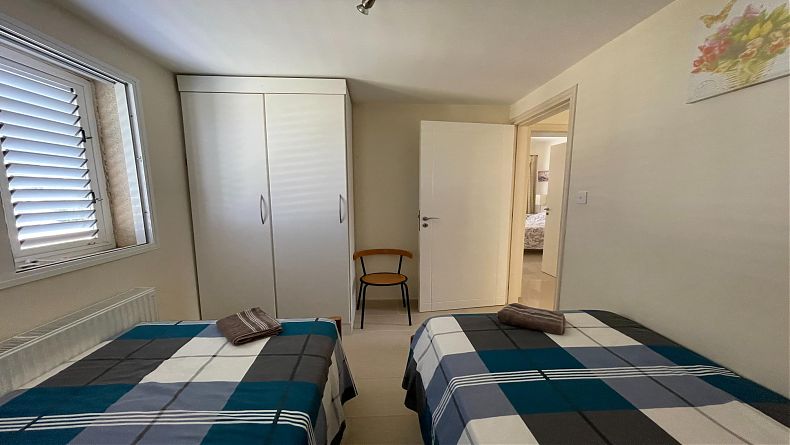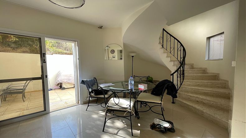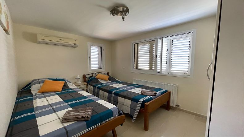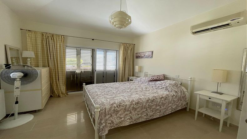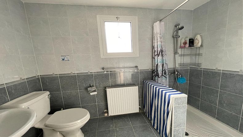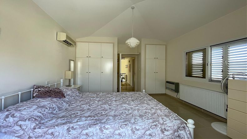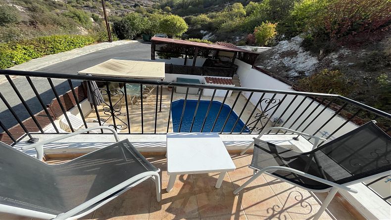 The villa has 2 bedrooms on the first floor as well as a family bathroom. There is an uncovered balcony with mountain views from the one bedroom.
