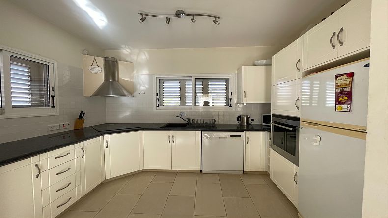 As you enter the villa, you are greeted by an open plan kitchen, living and dining room.