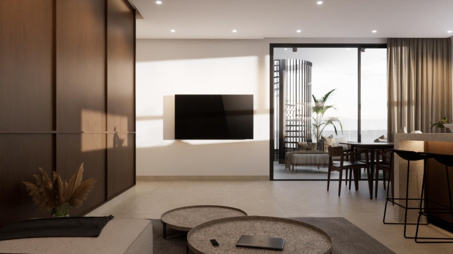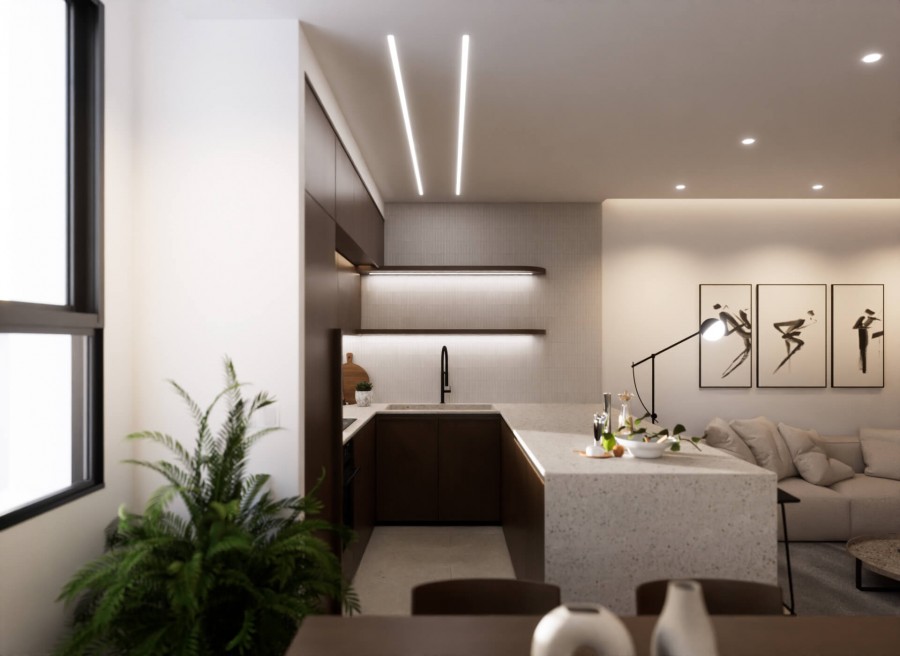 A brand new contemporary apartment building offering 9 superb apartment units at a supreme location. Each unit boasts large open floor plans, with sleek and modern finishes throughout. The living areas are ideal for entertaining, with open-plan design and large covered balconies that offer the perfect spot to take in the amazing sea views on offer. The kitchens are equipped with topof- the-line appliances and ample storage space, perfect for those who love to cook and entertain. The bedrooms are designed for maximum comfort and feature large windows, allowing for ample natural light and stunning views of the sea. One of the building’s standout features is its energy efficiency. It is designed to the highest standards and is rated as an “A+” class building, with the use of solar panels, insulation throughout, electric car chargers provisions, energy-efficient appliances, and other sustainable features that help to minimize the environmental impact and lower energy costs for residents. This unit has a private roof garden of 61.2 square meters and 2 covered parking spaces.