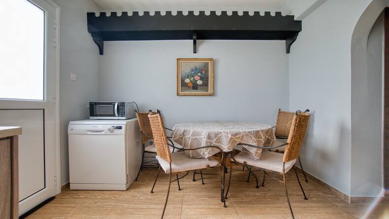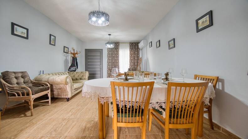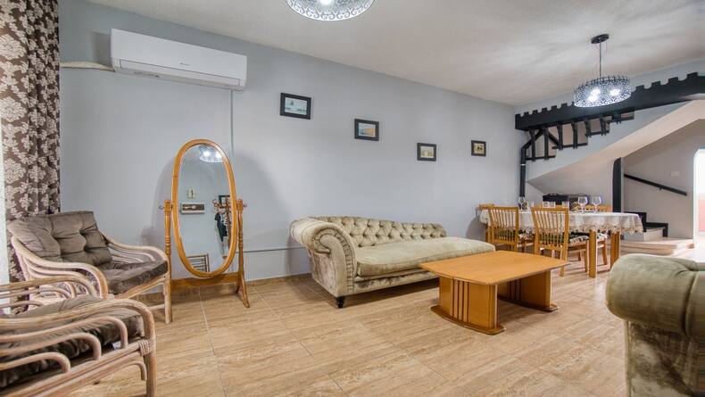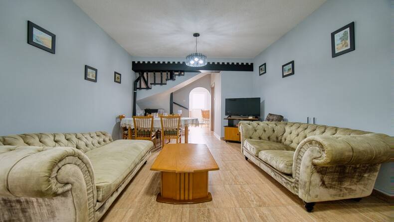 We present you with a cozy two-bedroom townhouse in the heart of the tourist area of Paphos, 300 meters from the sea and the sandy beach of Antasia. This cozy townhouse includes a living area with patio doors leading to a large front veranda. Also on this floor, there is a guest toilet and a separate, equipped kitchen with an exit to the back veranda of the same large size. On the second floor there are two double bedrooms with built-in wardrobes, one of the bedrooms has its own balcony overlooking the hotel. The house has new air conditioning and a heating fireplace. This property also has its own parking space, which is written in the title deed. Residents of this complex are allowed to use two large swimming pools, a tennis court, and a children's playground. You can also use the hotel restaurant.