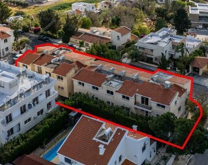 Two adjacent plots in Emba. Within the plots there is a residential complex.There are 6 two-storey houses and 4 two-storey houses. There is a communal swimming pool for all houses as well as a basement including parking spaces.The covered areas of the houses range from 75 to 91 sq.m. plus 4 to 11 sq.m. covered verandas. The ground floor consists of an open plan sitting/living area with kitchen, a guest toilet and a veranda. The first floor consists of 2 bedrooms, a bathroom and a veranda.The properties offers great proximity to all amenities such as supermarkets, bakeries, pharmacies, schools, fitness clubs and more.