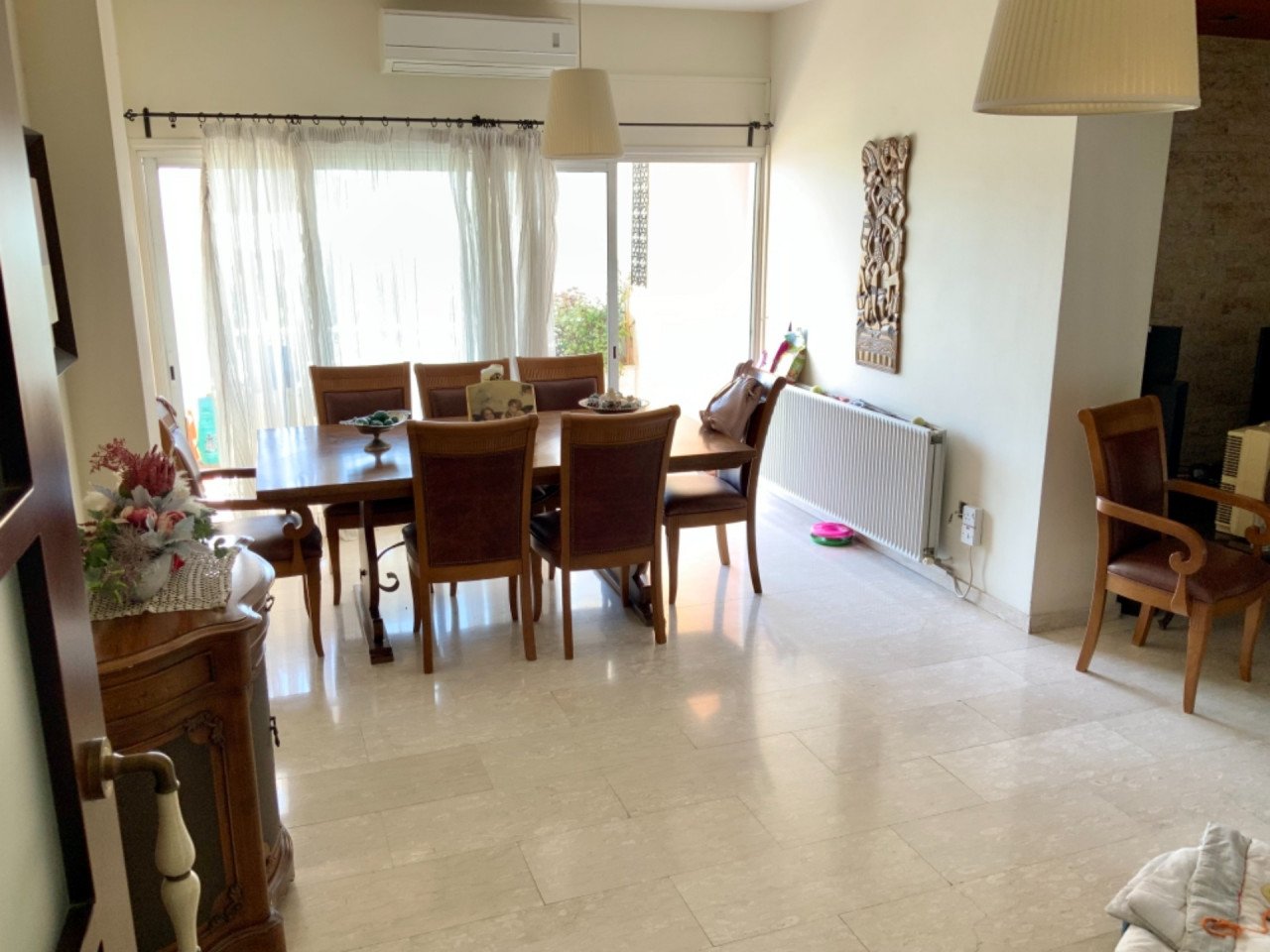 The property is on the second floor in a two-storey building, which was built on 1990 without lift and was full renovated on 2005. Apartment consists of 275sqm. internal area and 20sqm veranda. The property has three bedroom and another one room which can use as bedroom or office, semi-open plan kitchen with dining area which joined to balcony, living room which joined to veranda as well, two bathrooms and covered parking space. It also has a solar panels, pressurized water, petrol central heating and a/c split unit in all rooms.