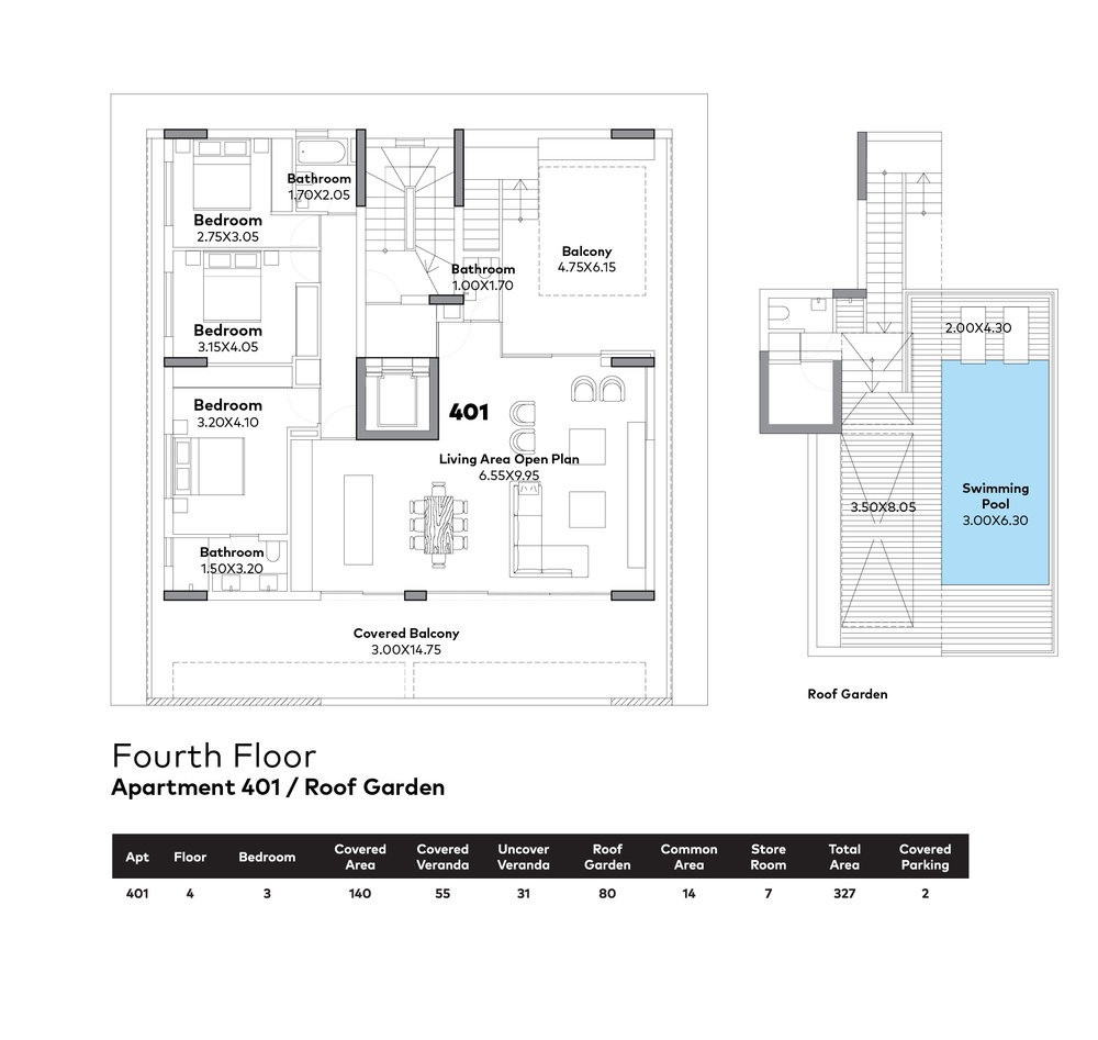 3-bedrooms penthouse with a private pool. Located in the city center, within walking distance of St. Nicholas roundabout.